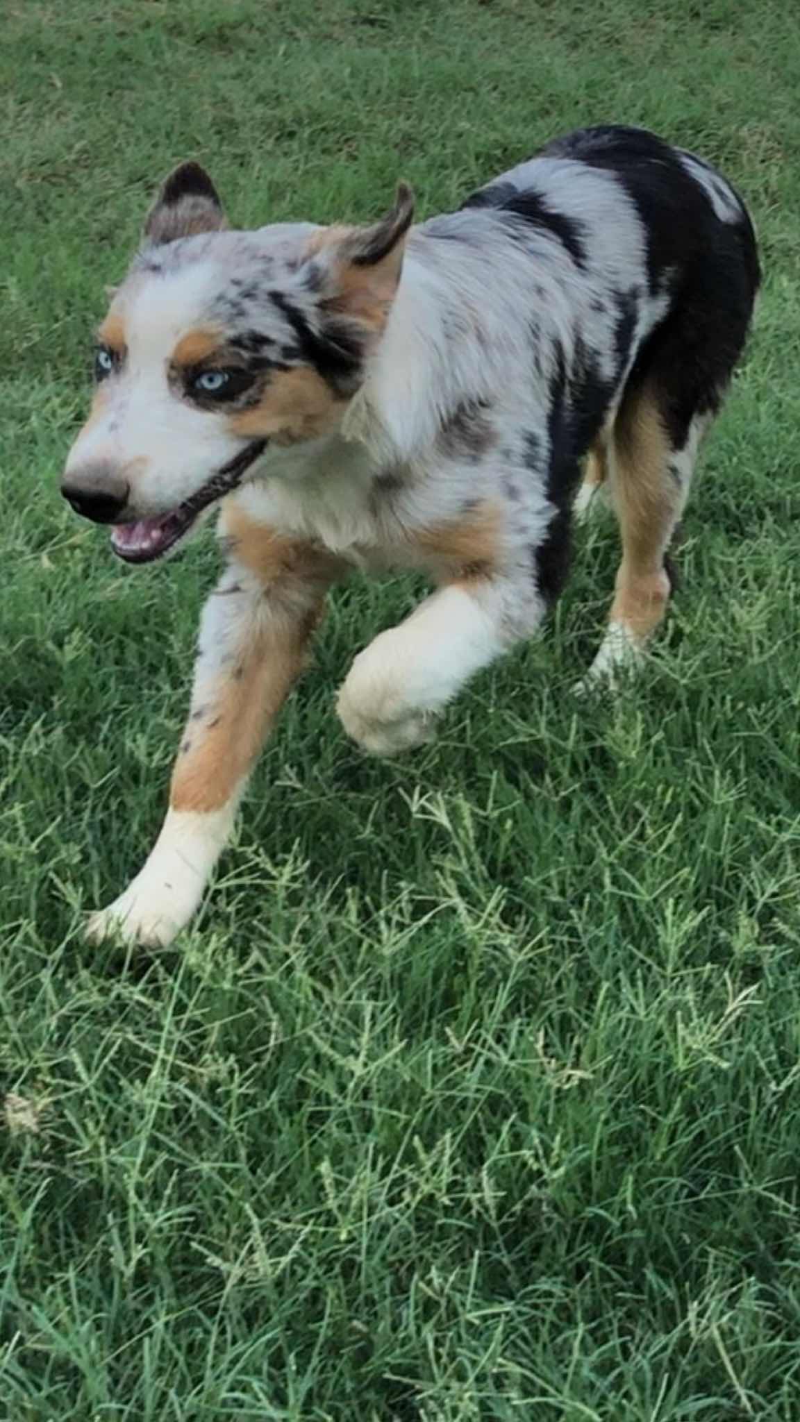 Aussies in general are a high energy, loyal breed that does best with an active lifestyle. They do well with other dogs when socialized and love herding as a part of their natural instinct!